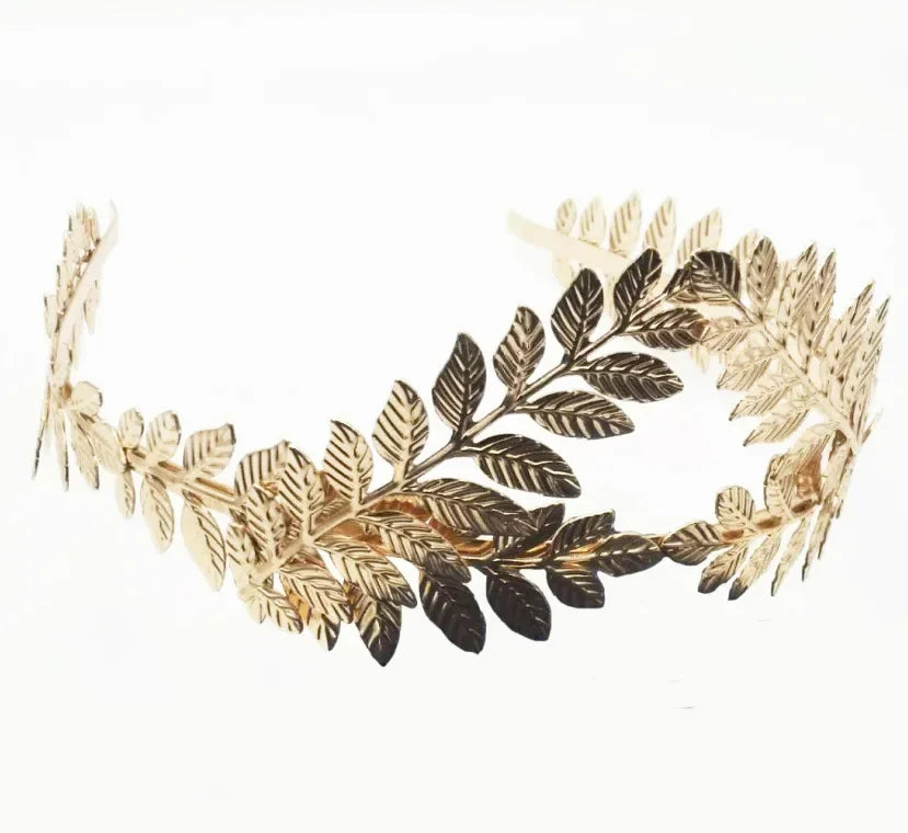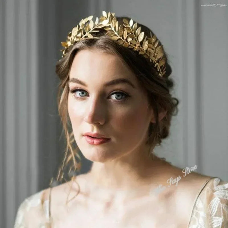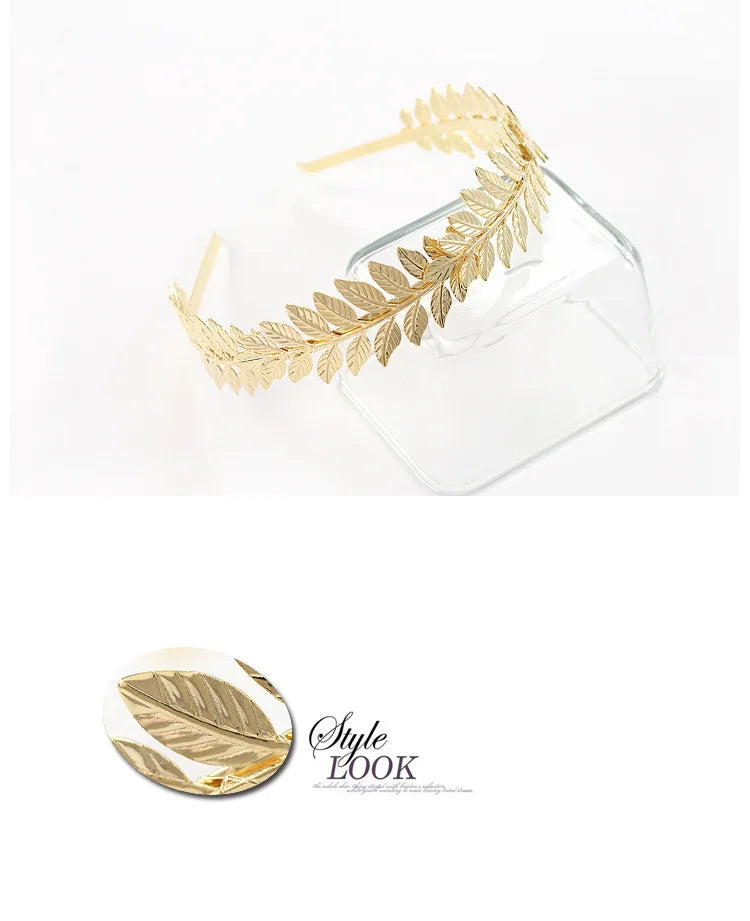 Baroque Golden Metal Leaf Headband Headpiece Crown tiaras Headdress Roman Goddess Greek Hair Jewelry Bride Wedding Accessories